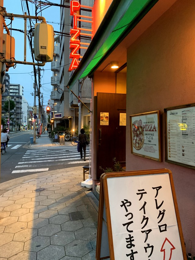 天満の有名イタリアン、アレグロさんも最近は持ち帰りになってました。ピザ美味しいんです。