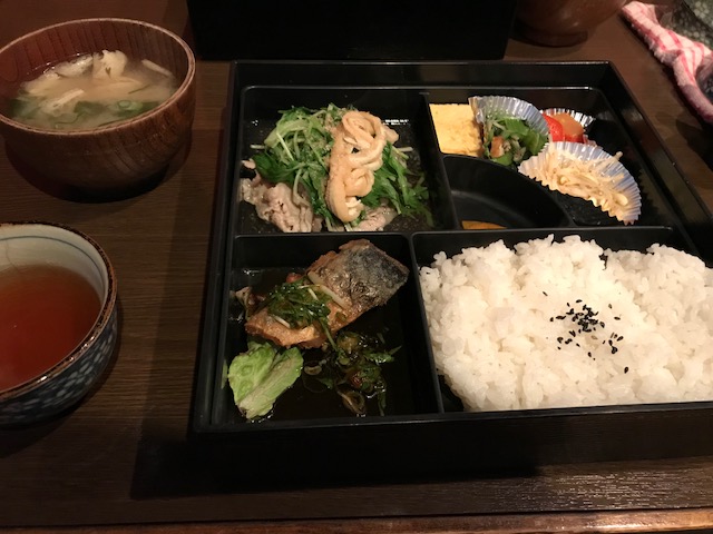 本日は、豚肉と水菜、はりはり煮、サバ唐揚、味噌汁のお弁当でした。