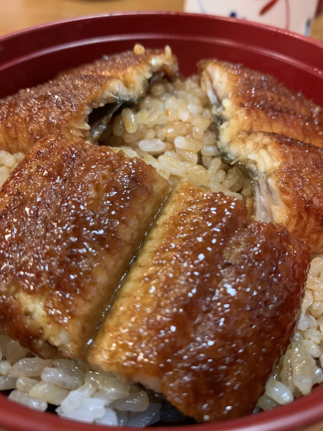 ご飯の間にも鰻様がぎっしり。打ち合わせ兼ねてだから会社持ちだぜ〜