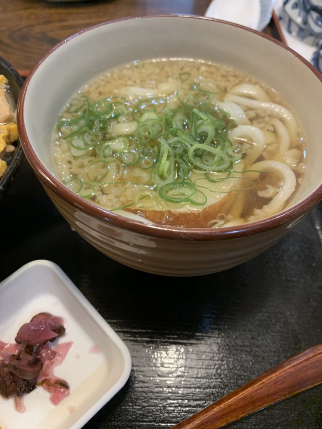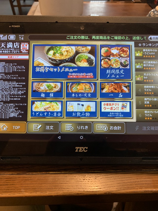 これはミニうどんとミニ親子丼700円ですが、もうミニミニでも十分な量でしたし、注文はタッチパネルで非対面営業を率先されています。これはかごの屋さんと同じ種類のタッチパネルのような、UIでなんか気付きました。