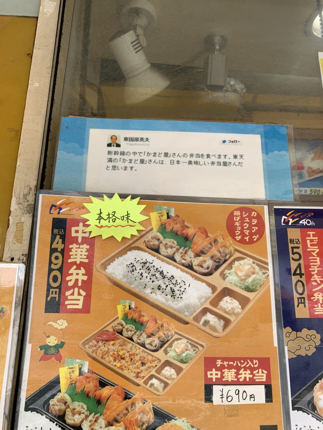 新幹線の中で「かまど屋」さんの弁当を食べます。東天満の「かまど屋」さんは、日本一美味しい弁当屋さんだと思います。