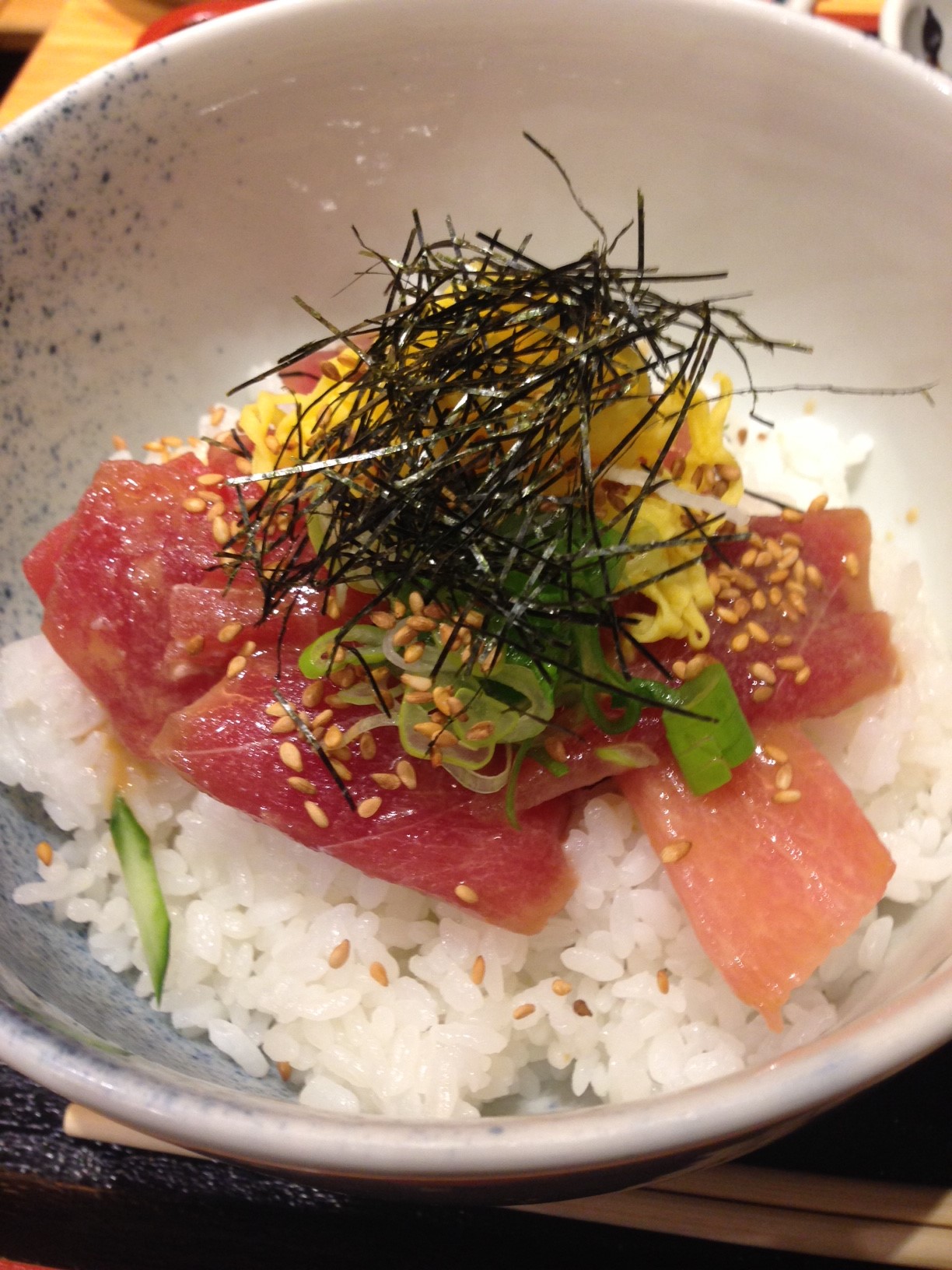ゴマだれかかった鉄火丼とゴマうどんのランチセット。