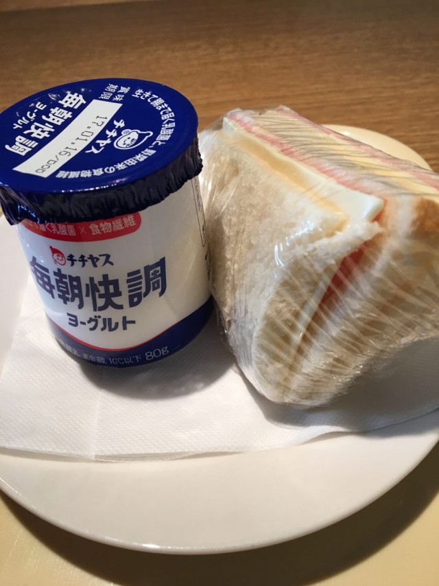 ハニーミツバチ南森町店のサンドイッチとヨーグルト朝食です。