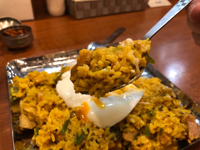 綺麗な金属皿にトロットロの卵付きで盛られてきましたよ。