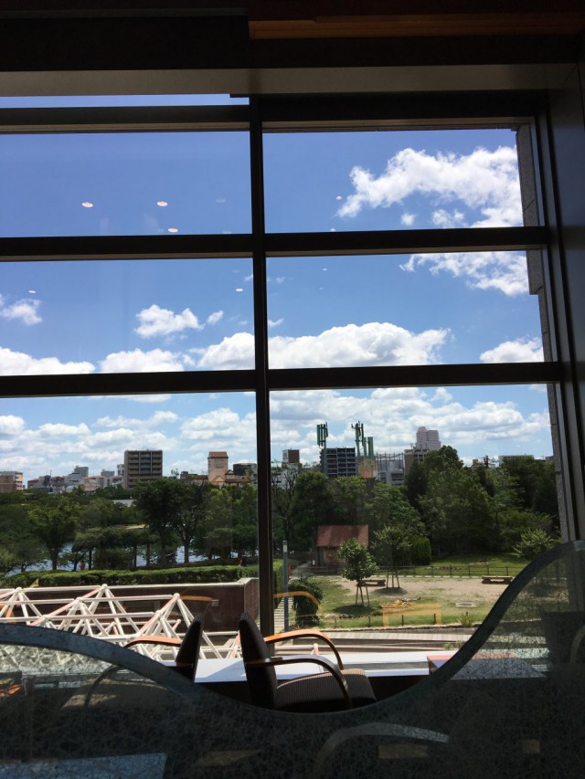 ここは2階、公園と大川とたまに走る水陸両用のダックツアー。