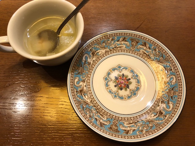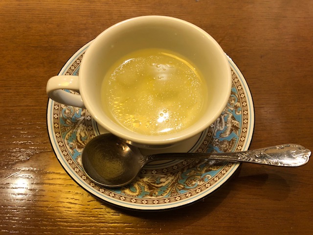 まずはスープ。見た目シンプルですが意外と奥深い味です。