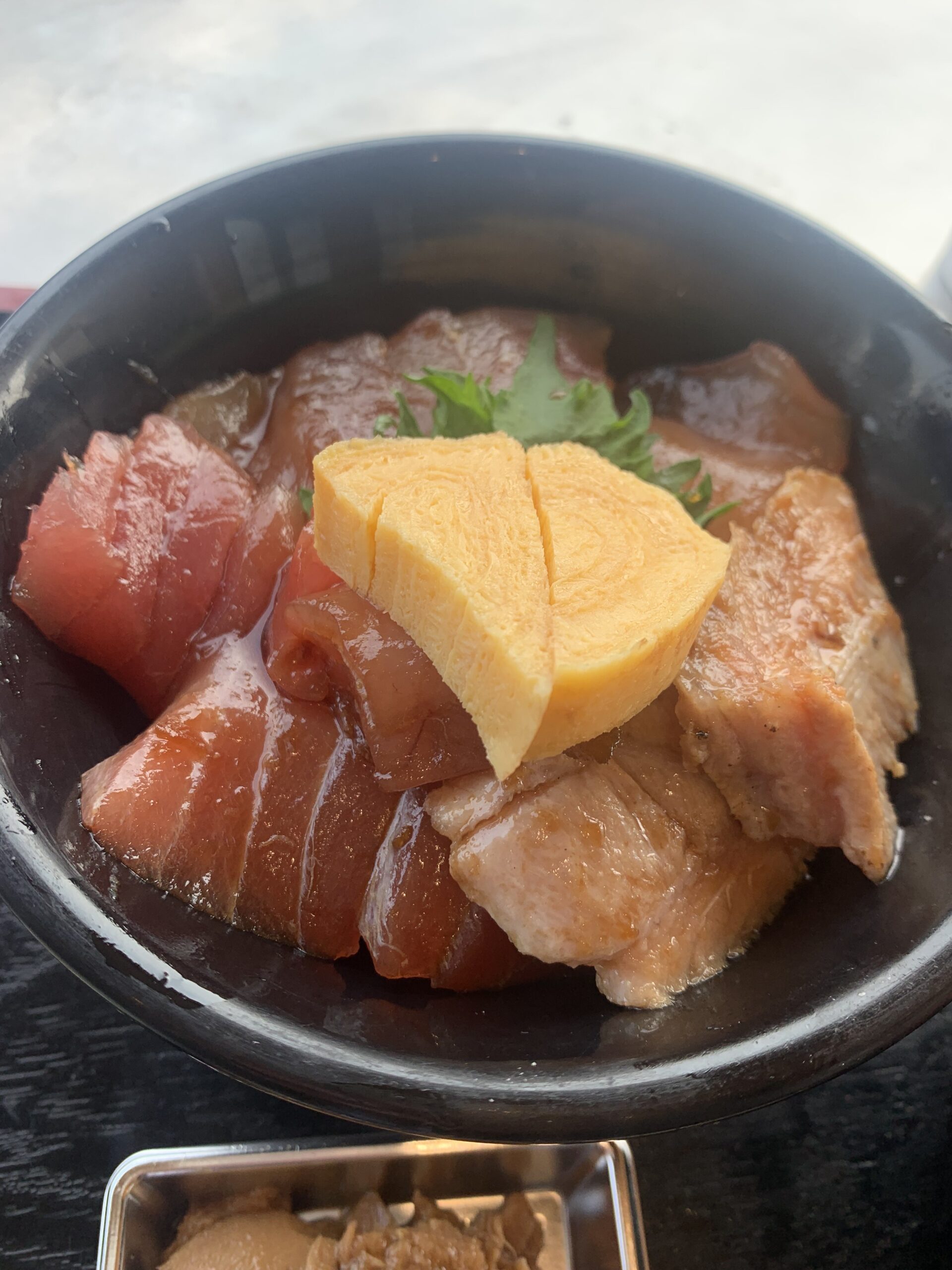 にぎわい市場のヤマサ脇口さんのまぐろ丼です、もちマグロ、とろんとしまして歯ごたえ最高です。