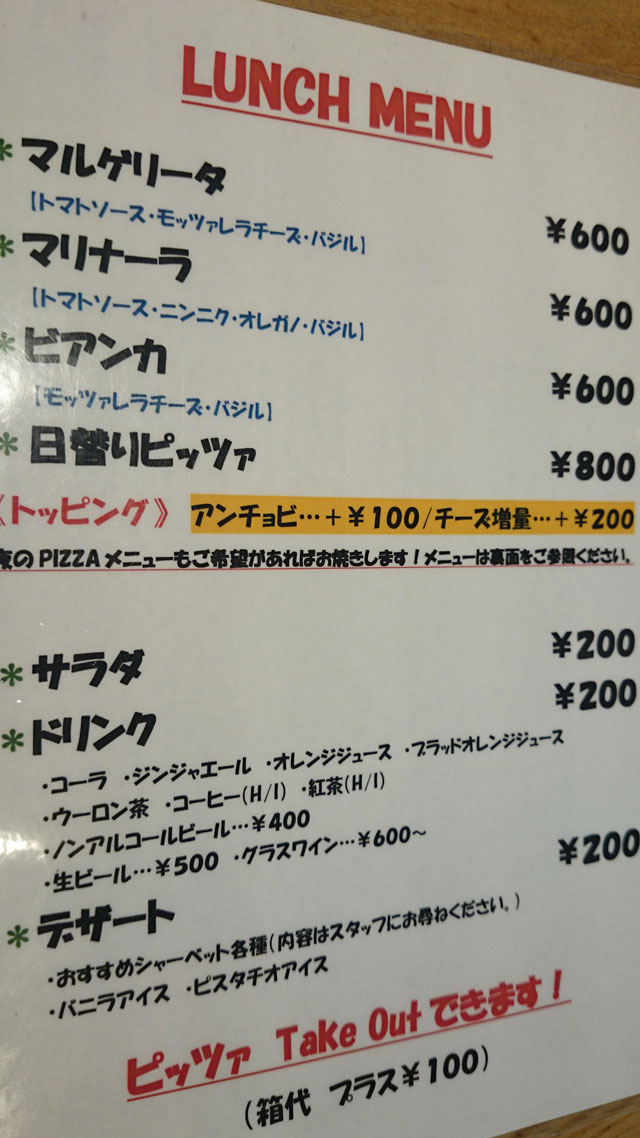 そんな本格的なピザ屋さんですがなんと600円から食べることができます。
