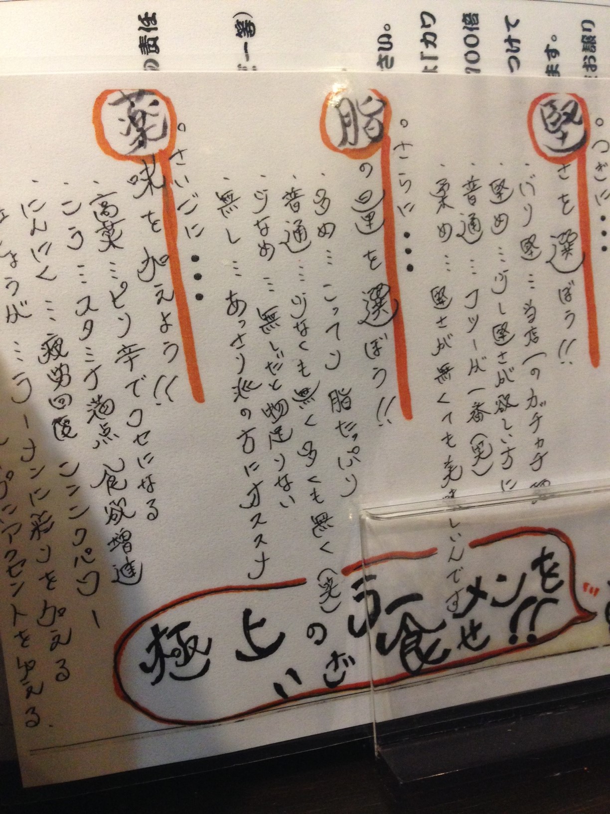 麺の硬さや細さなどを細かめに決めれるのですが、ココイチのカレーの如く「全部普通で!」と言ってしまってます。昔ココイチカレーの「一辛」、「二辛」、チャレンジしたけどなかなか辛く「ふつう」に戻った経験から、普通でうまいからそれでいいかと。仕事は常に改善、けど食は保守的。