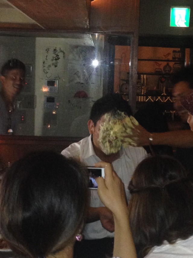 ついでに別の組でハッピーバースデーだったみたいで、ケーキをべちゃっと顔面にやられてました。