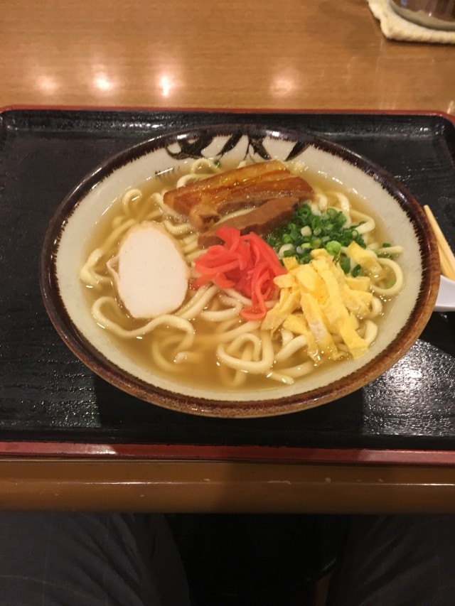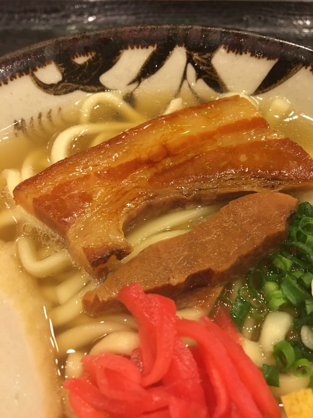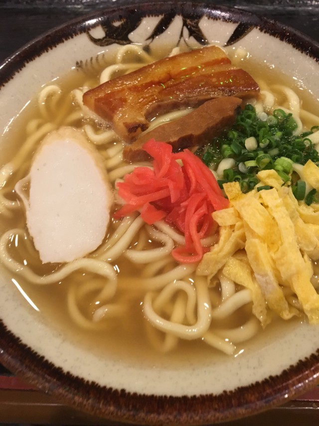 オキナワそば=そうきそば。ちゅるんとした味でちょっとお疲れ気味なときにはお腹に優しい蕎麦です。