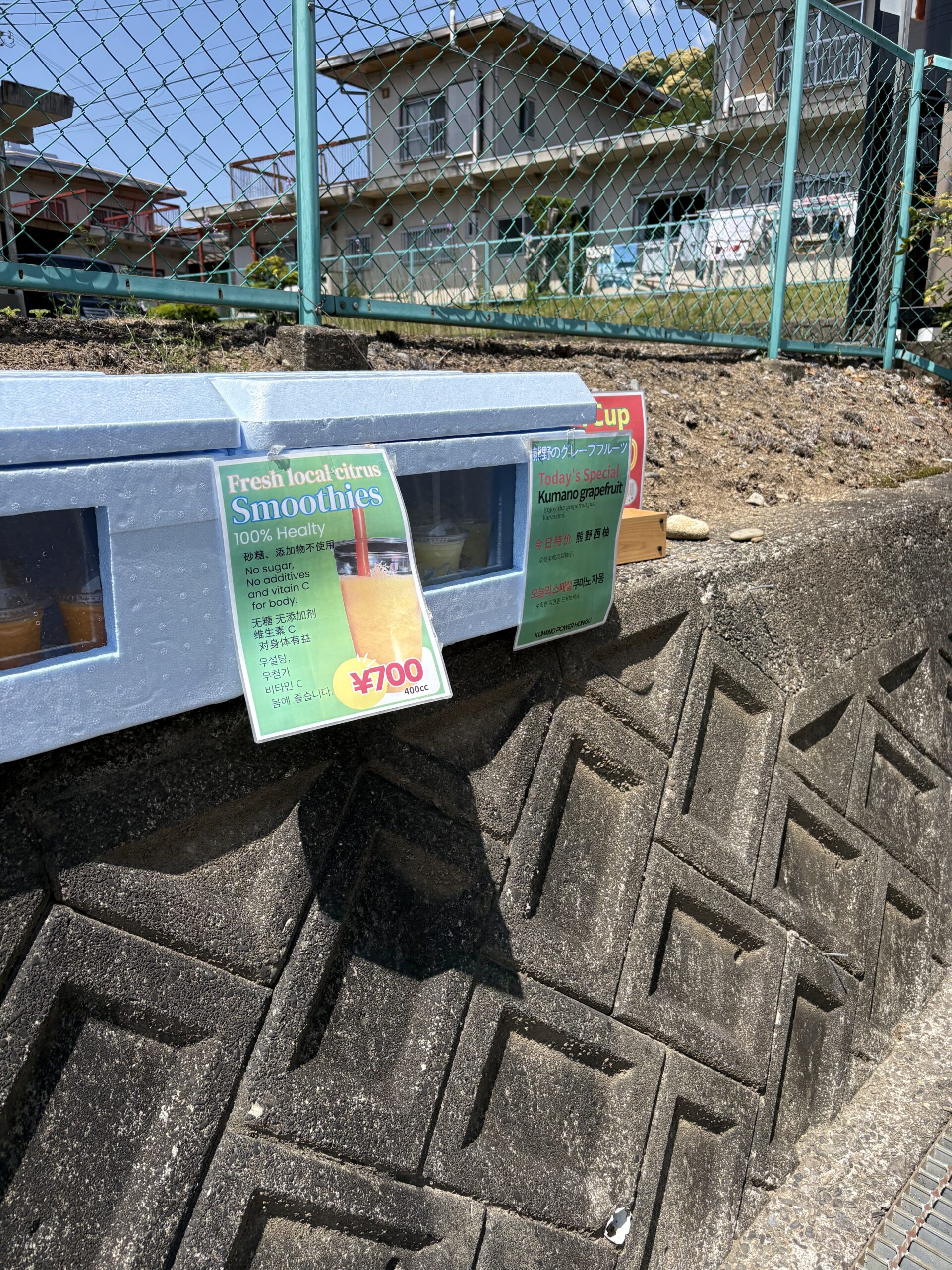 コンビニでは人がいると分かるように本コーナーは外から見えるところに置く、客が客呼ぶやつをしてしまいましたが、みなさんご機嫌だったので熊野カラマンダリンスムージー、また今度もあればおすすめです。
