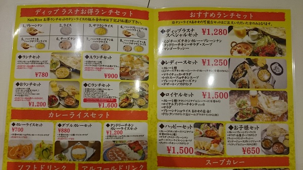 今回はランチセットを注文し、カレーの種類は看板にありました