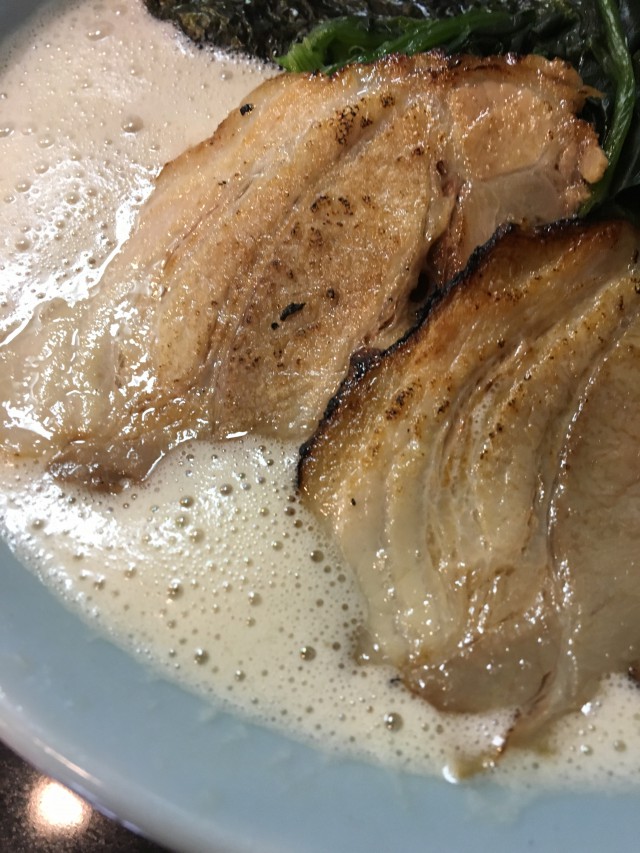 トッピングはチャーシュー・海苔・ほうれん草がスタンダード。当店はチャーシューを特製ダレに漬けて仕込んでいるから柔らかく味もしっかりめでうまい!!