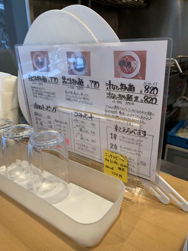 「こっそりビール」平日11時~15時限定100円、に目が行きました、このあたりは裁判所の裏あたりなので弁護士先生が多いから普通に飲むニーズが多そうな気がしますし、2時前聞くと普通に隣の紳士が飲んでましたので勝手に弁護士先生ではないかと推測しています。さすがに平日からこそっとでも飲む気持ちになかなかなれない小心者なので。