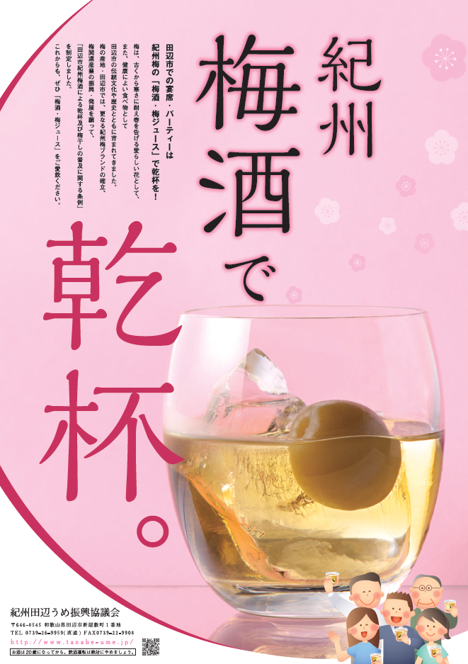梅は、古くから寒さに耐え春を告げる愛らしい花として、また、健康によい食べ物として田辺市の伝統文化や歴史とともに育まれてきました。 梅の産地・田辺市では、更なる紀州梅ブランドの確立、梅関連産業の振興・発展を願って、「田辺市紀州梅酒による乾杯及び梅干しの普及に関する条例」を制定しました。 これからも、ぜひ「梅酒・梅ジュース」をご愛飲ください。