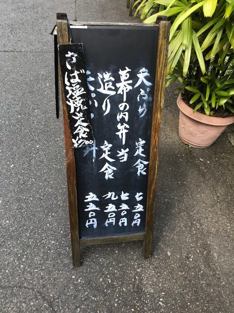 メニューはこちら、お造り定食と天ぷら定食という響きに負けてすごく食べたくなり店内へ。