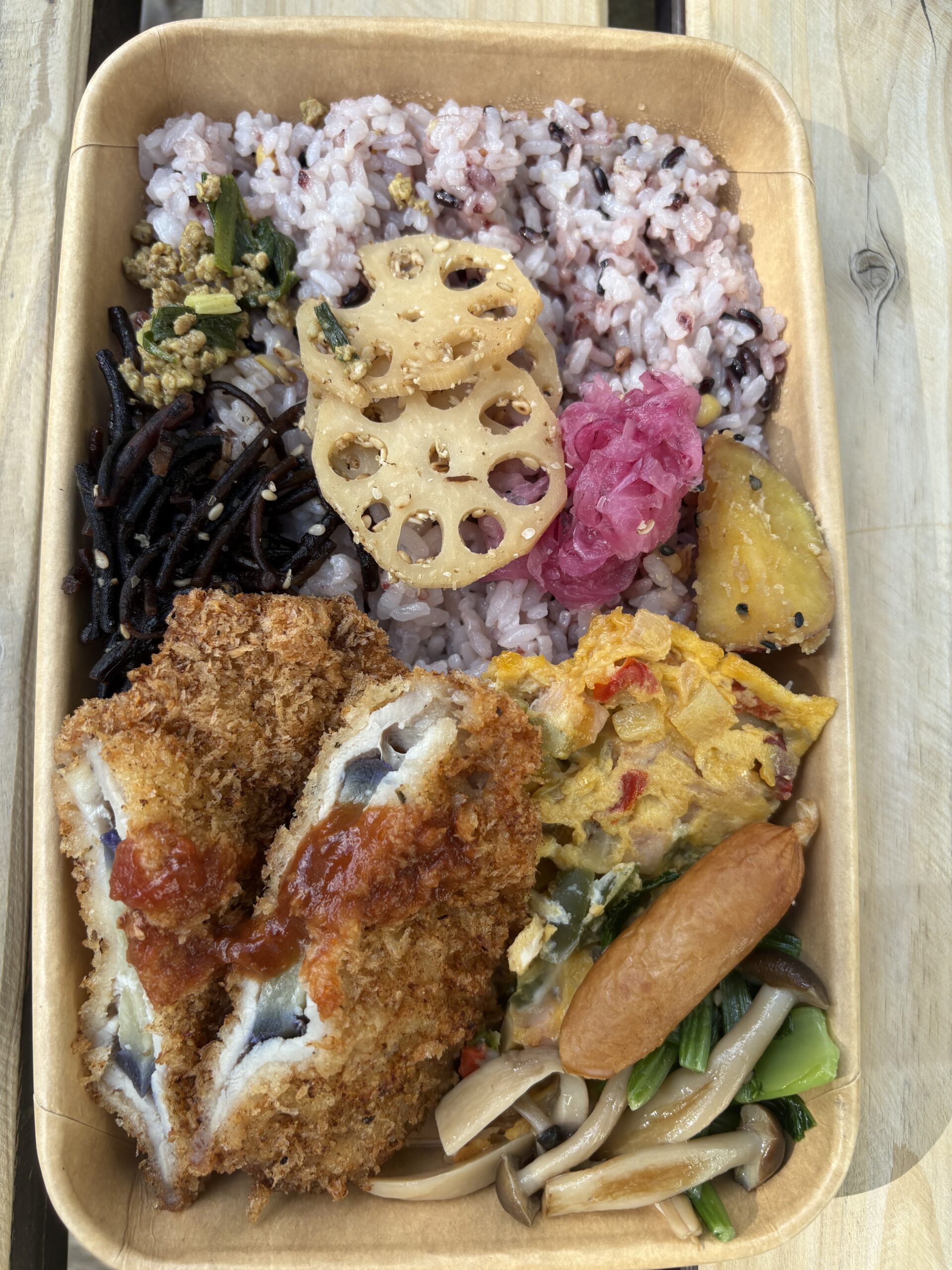お弁当でもおかずが多く栄養価もよさそうなのですが、なかなか満腹感もあって満足です、いい天気だったので西天満公園で食べてるとハトも寄ってきました。