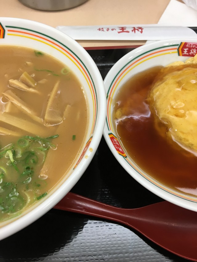 餃子の王将南森町店さんでのラーメン天津飯セット
